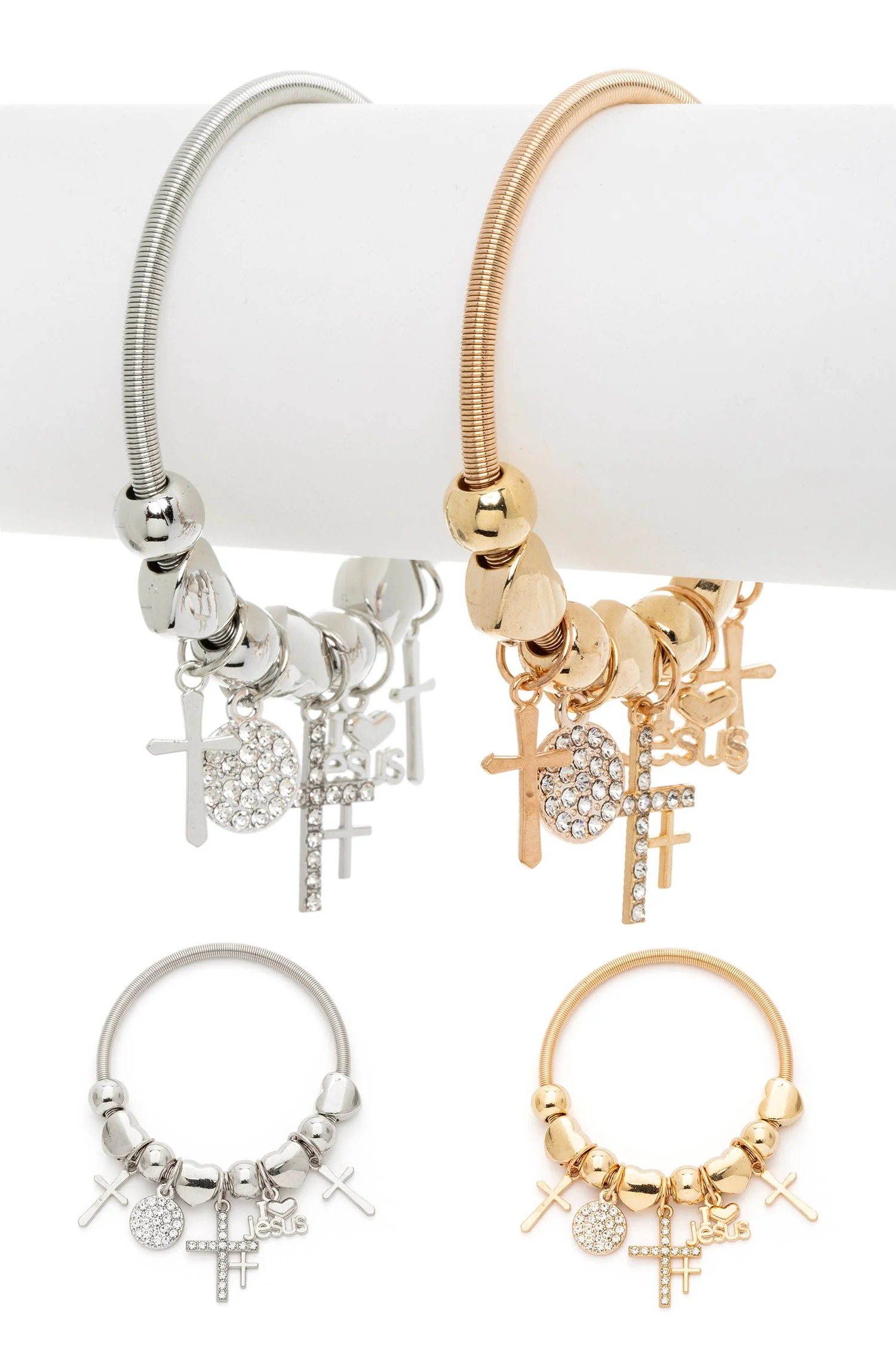 This coil bangle bracelet features faith-forward charms that keep your message close and your style polished. Easy slip-on design makes it perfect for everyday wear, stacking, and gifting. Available in multiple tones, including styles with an “I ♥ Jesus” charm