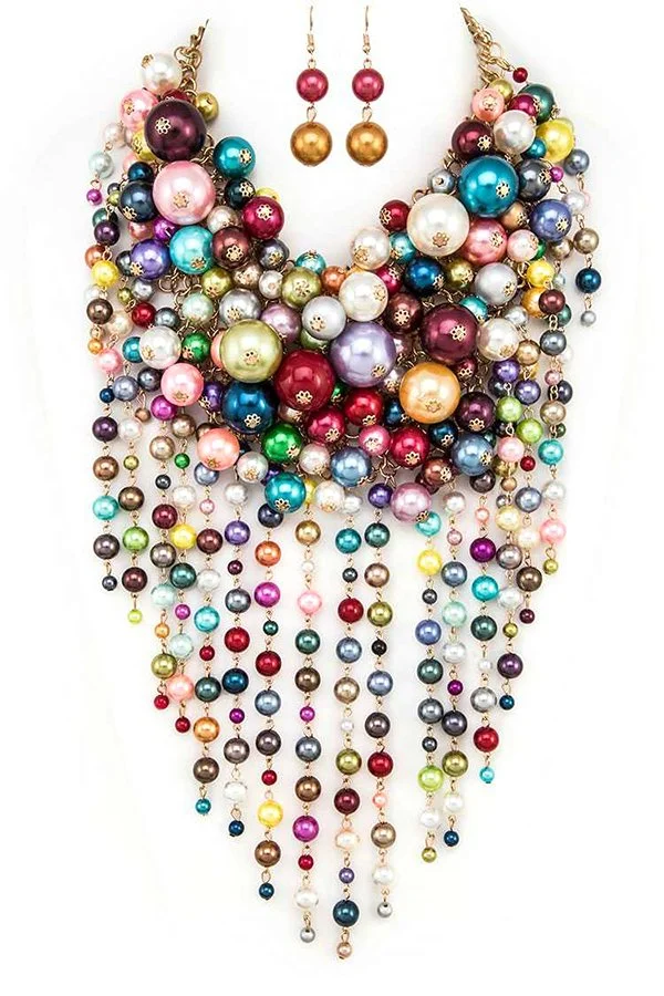 Multi-color beads + fringe drama = the ultimate party piece. Turns neutrals into a whole outfit.