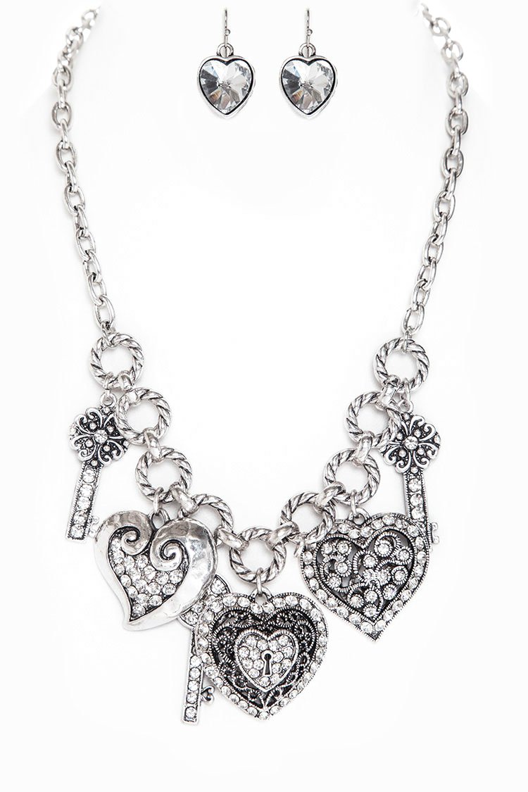 Store › The Heart of Lynnette Image 1 of 2 Image 2 of 2 The Heart of Lynnette Sale Price: $28.00 Original Price: $35.00 Silver charm statement with hearts + keys — romantic, fun, and easy to style. Add To Cart Added! Silver charm statement with hearts + keys — romantic, fun, and easy to style.