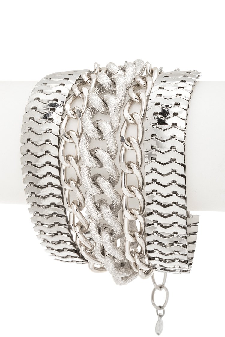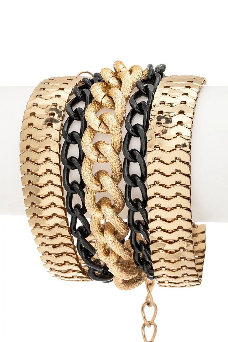 This multi-row wrap bracelet stacks bold textures, glossy links, and a statement center chain for instant wrist drama. It gives the “I’m dressed” look even with a plain tee or sweater. Available in multiple colorways, so you can go classic, edgy, or full glam.